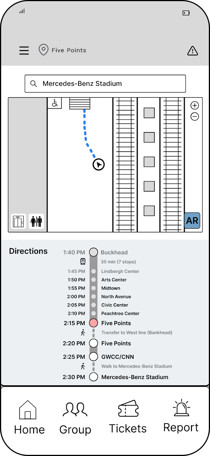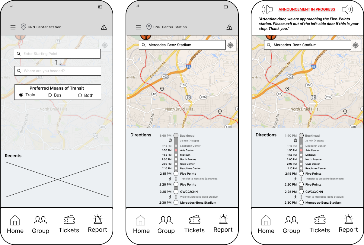 In this four-month UX research project, I led a team to address the problem of MARTA's fragmented user experience, which poses a significant challenge for the large crowds expected during the 2026 World Cup in Atlanta. My team and I used a multi-method approach, including surveys, interviews, and observations, to understand user needs. I then designed and evaluated a high-fidelity prototype for a unified MARTA app, combining features for trip planning, ticketing, and safety. Providing MARTA with key research and design recommendations, this project laid the groundwork for a user-friendly digital tool to enhance accessibility and promote transit use for the World Cup.